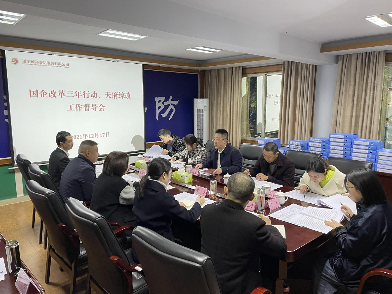 ? ? 12月17日,遂寧市國資委黨委委員、副主任陳伏龍一行到順邦安防公司督導(dǎo)國企改革三年行動(dòng)、天府綜改相關(guān)工作。遂寧興業(yè)集團(tuán)黨委委員、財(cái)務(wù)總監(jiān)何玫,順邦安防公司黨委書記、董事長、總經(jīng)理唐清華,黨委副書記、監(jiān)事會(huì)主席廖芹,副總經(jīng)理董奎、劉光連和公司全體中層干部參加督導(dǎo)會(huì)。